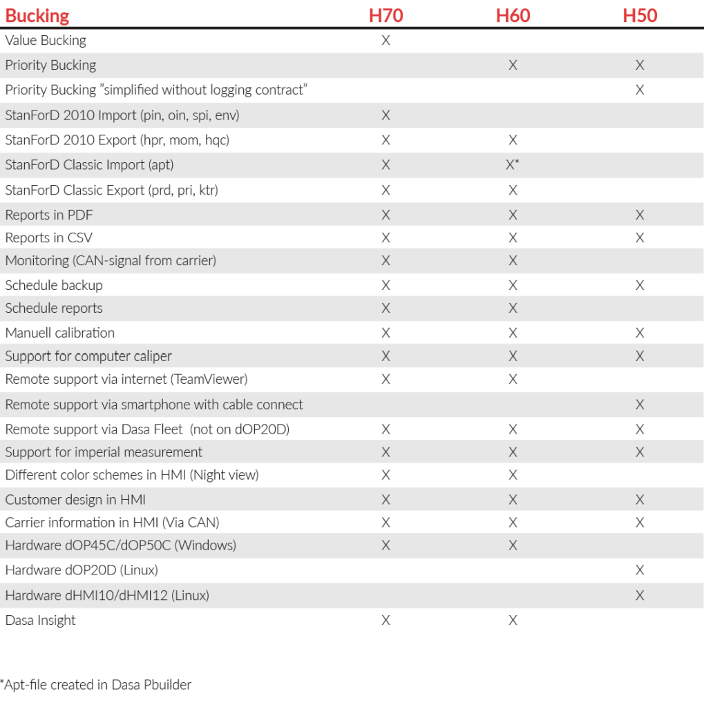 Dasa H50 is a robust and easy-touse bucking software for measuring and controlling the production process. Just set the priority of length and diameter and the Dasa H50 will make sure you get the desired bucking result.