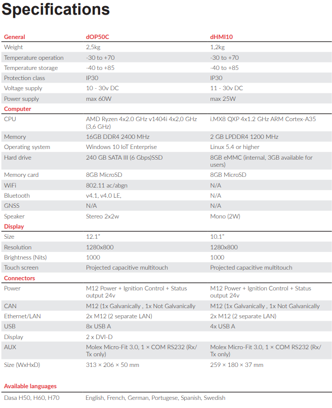 The Dasa 7 comes in three different levels of control, H50,H60 or H70. Below you can see what is included in the different levels and what distinguishes them. Choose between the different software levels to perfectly match your needs.